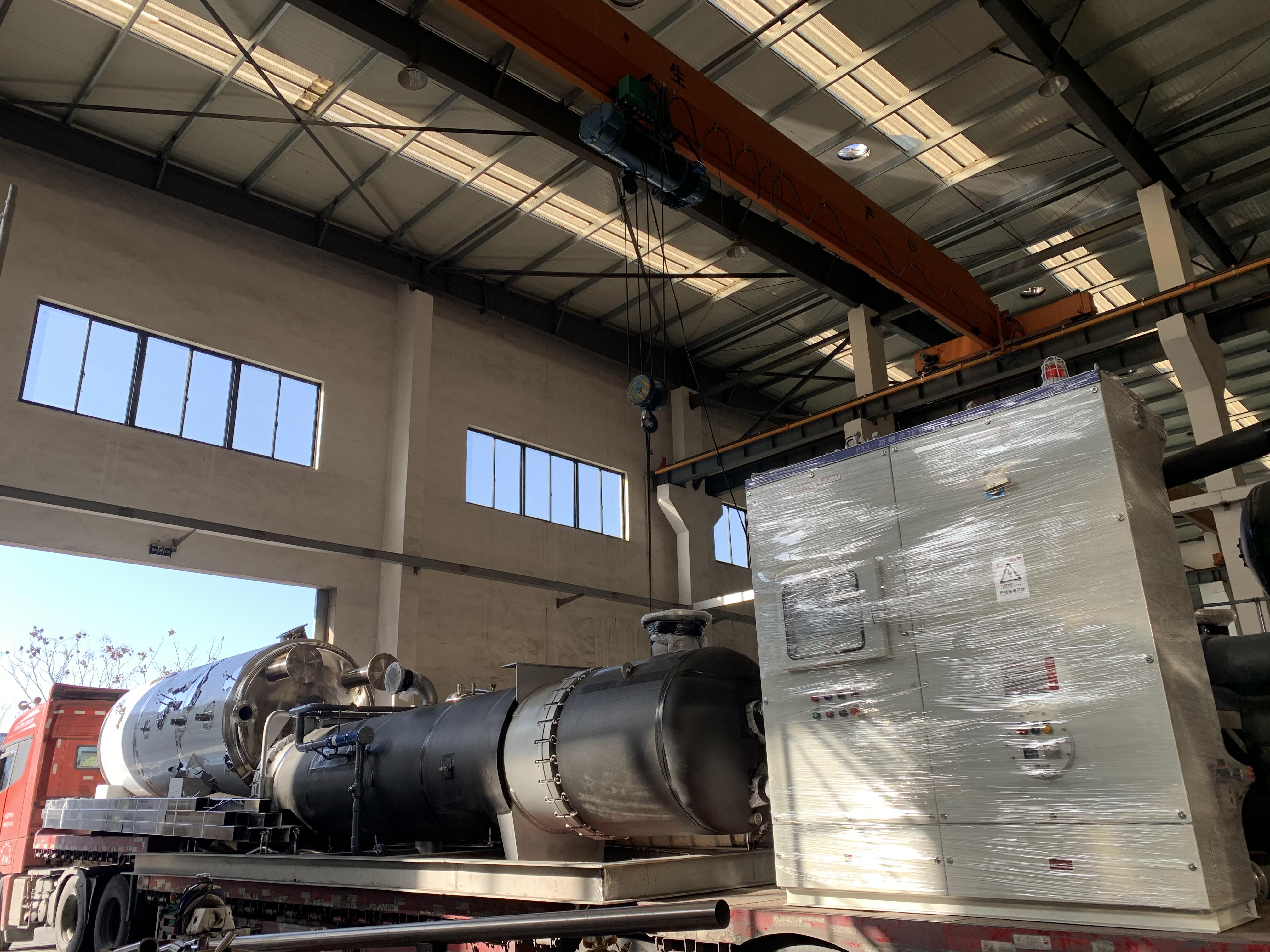 自敏杰成功研發(fā)SDR高效節(jié)能濃縮機(jī)以來,已被廣泛受到制藥、食品、化工、生物、環(huán)保等行業(yè)的關(guān)注,解決了目前傳統(tǒng)單效蒸發(fā)器、雙效蒸發(fā)器等蒸發(fā)設(shè)備蒸汽耗量大,能耗高等問題,大大降低了用戶生產(chǎn)過程中的運行成本。據(jù)統(tǒng)計,自更換敏杰的高效節(jié)能濃縮設(shè)備后,某企業(yè)每年可節(jié)約600多萬的成本費用。以下為陸續(xù)發(fā)往不同客戶的設(shè)備照片