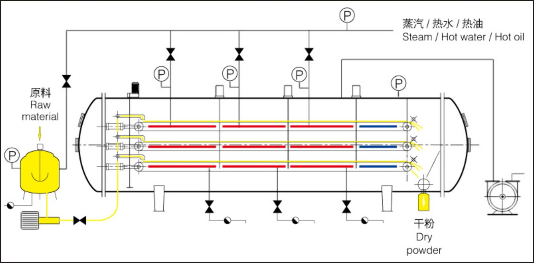 適用范圍:主要適用于中西藥品、食品、生物工程、化工原料、保健品、食品添加劑等各種液體膏狀類原料的低溫干燥,尤其是對于粘性高、易結(jié)團、熱塑性、熱敏性的物料;不適于或無法采用噴霧干燥的物料,真空低溫連續(xù)干燥機是最佳選擇。