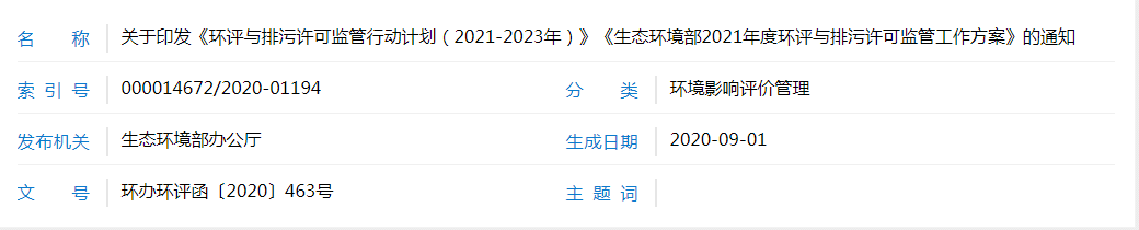 生態(tài)環(huán)境部2021年度環(huán)評(píng)與排污許可監(jiān)管工作方案