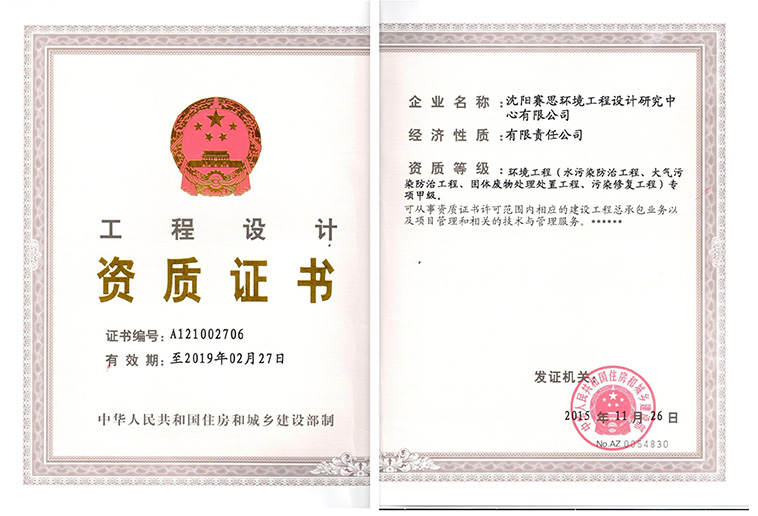 資質(zhì)等級(jí):環(huán)境工程(水污染防治工程、大氣污染防治工程、固體廢物處理處置工程、污染修復(fù)工程專項(xiàng)甲級(jí))