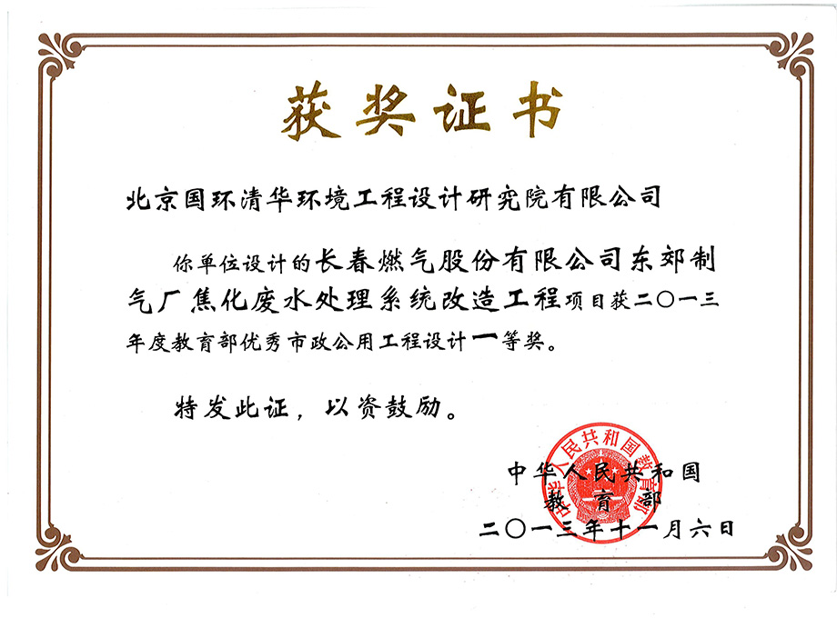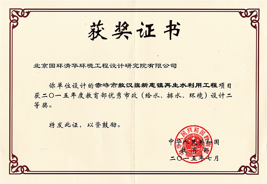 (1)教育部?jī)?yōu)秀市政(給水、排水、環(huán)境)設(shè)計(jì)二等獎(jiǎng)