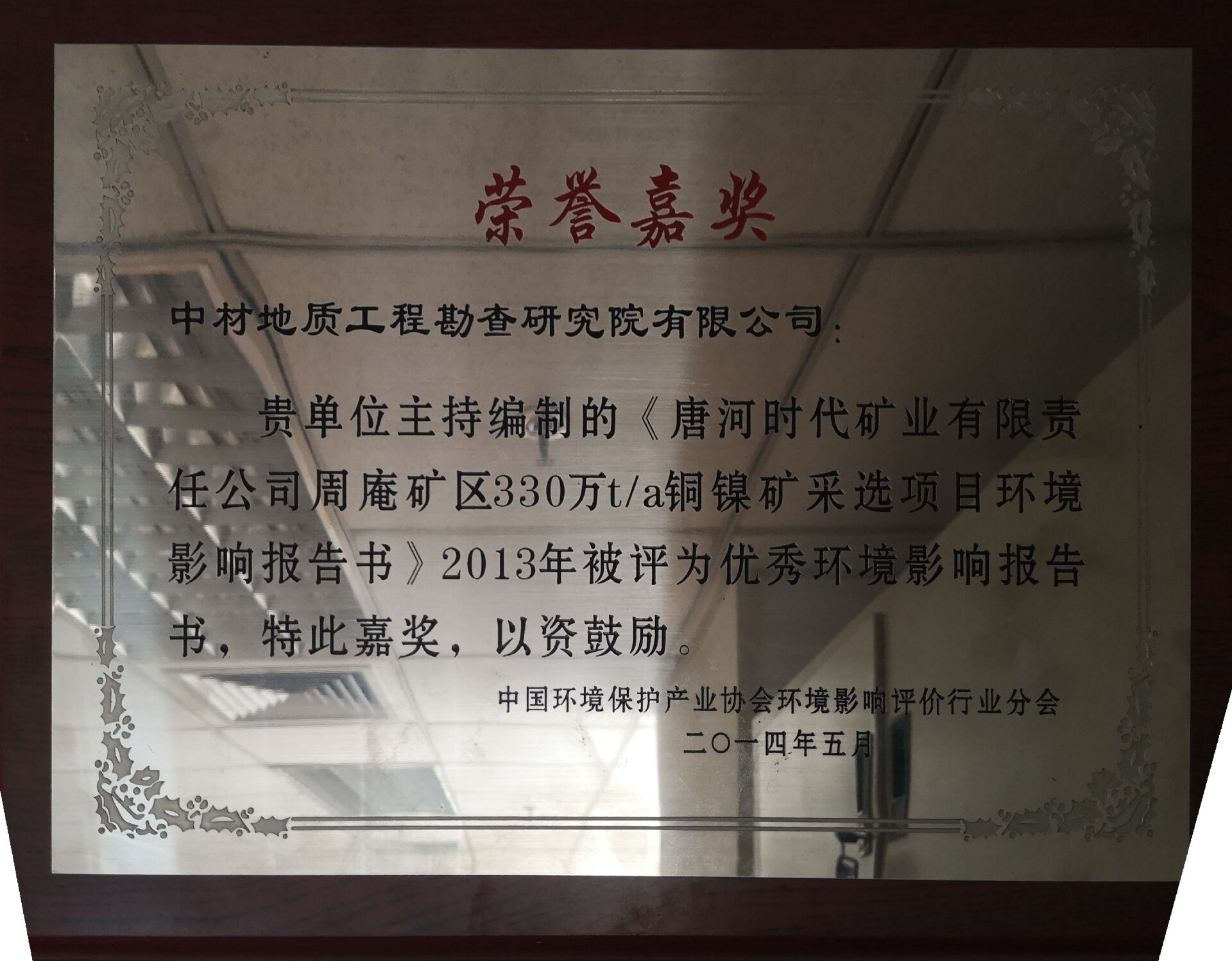 (1)2013年我院主持編制的《唐河時(shí)代礦業(yè)有限責(zé)任公司周庵礦區(qū)330萬(wàn)t/a銅鎳礦采選項(xiàng)目環(huán)境影響報(bào)告書(shū)》被評(píng)為優(yōu)秀環(huán)境影響報(bào)告書(shū),中國(guó)環(huán)境保護(hù)產(chǎn)業(yè)協(xié)會(huì)環(huán)境影響評(píng)價(jià)行業(yè)分會(huì)。
