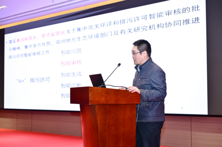 生態(tài)環(huán)境部評估中心數(shù)值模擬部正高級工程師趙曉宏、排污許可部正高級工程師吳鐵,分別以《報環(huán)評智能化審批改革試點任務(wù)和進(jìn)展》《人工智能技術(shù)賦能排污許可提質(zhì)增效》為題,介紹了和分享了國家層面人工智能在環(huán)評、排污許可方面的應(yīng)用進(jìn)展、工作模式、技術(shù)路線和試點探索等內(nèi)容。