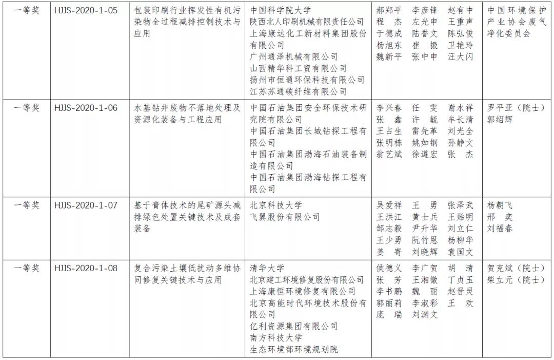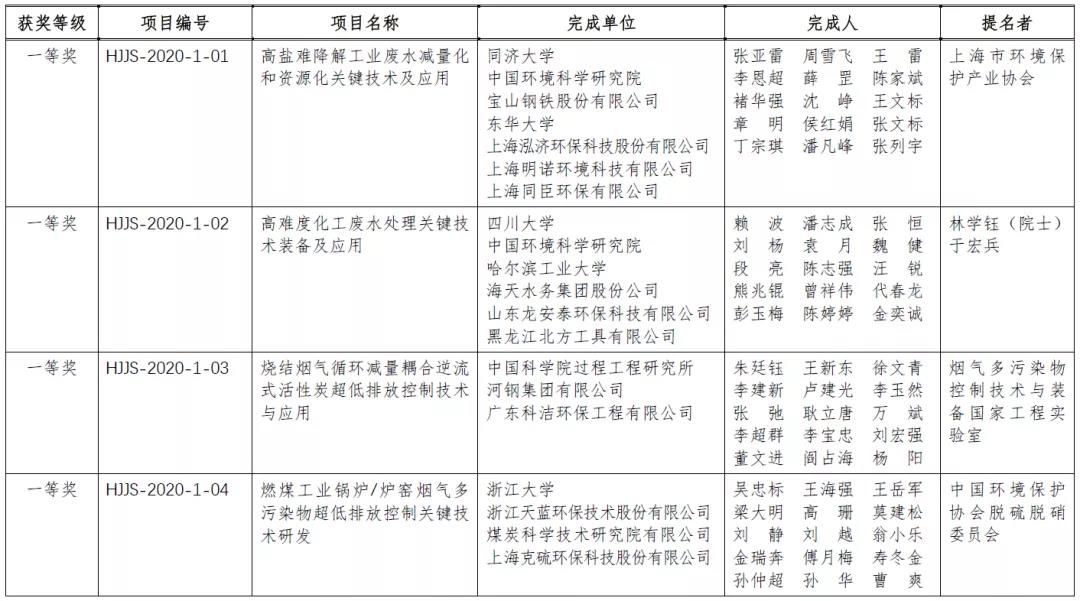 2020年度環(huán)境技術(shù)進(jìn)步獎獲獎項目名單
